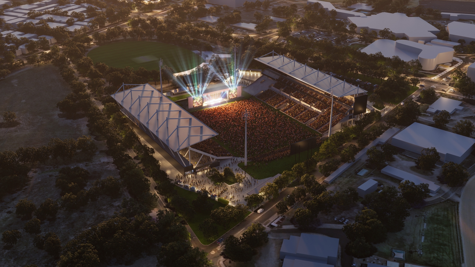 Additionally, the training field to the west of the stadium will be remodelled to create new quality open spaces with multipurpose courts and improved landscaping for further outdoor community use and entertainment events.